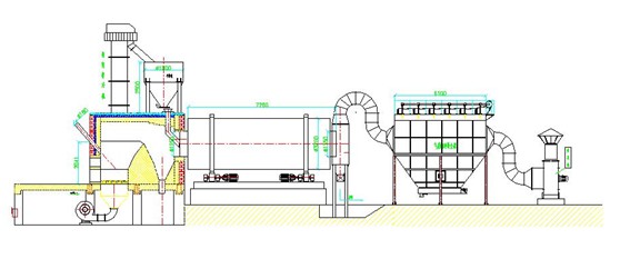 进入烘干机内的物料以不粘筒壁及扬料板为宜。进入烘干机内热交换的气体温度不宜高于750℃如有特殊要求高温烘干,烘干机的入口处内筒及扬料板可用耐热钢板制造。